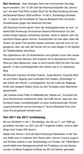 Hornissen gegen Hornets, am Sonntag, den 19.04.2026 in unserem schönen Baseballpark im Taunus!